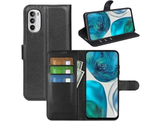 Die Lederhülle im Portemonnaie-Stil mit Kartenfächern für das Motorola Moto G82 5G ist praktisch, schlank und schützt Ihr Motorola Moto G82 5G Smartphone optimal vor Schlägen, Kratzern und Stössen.